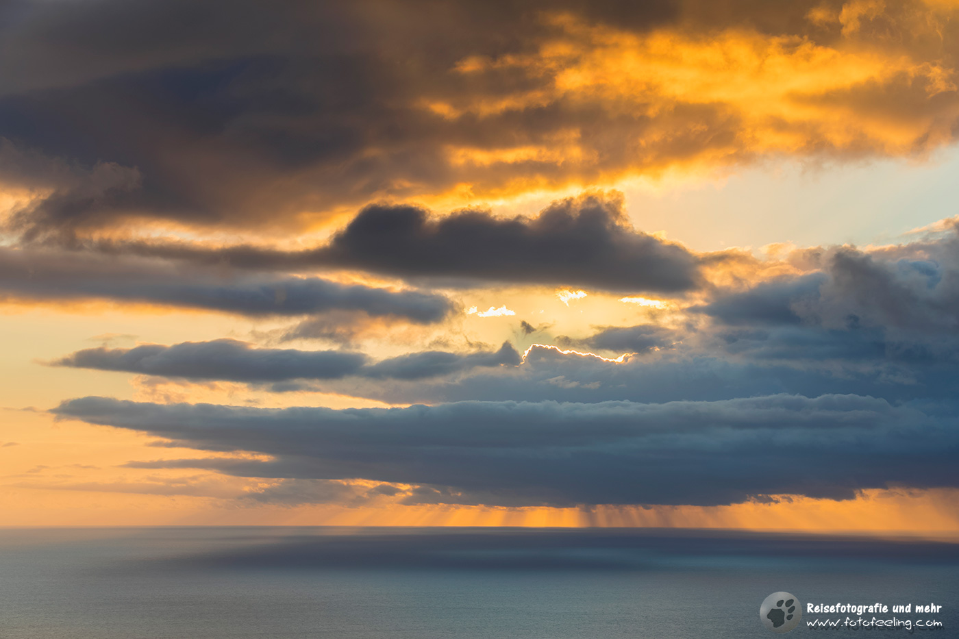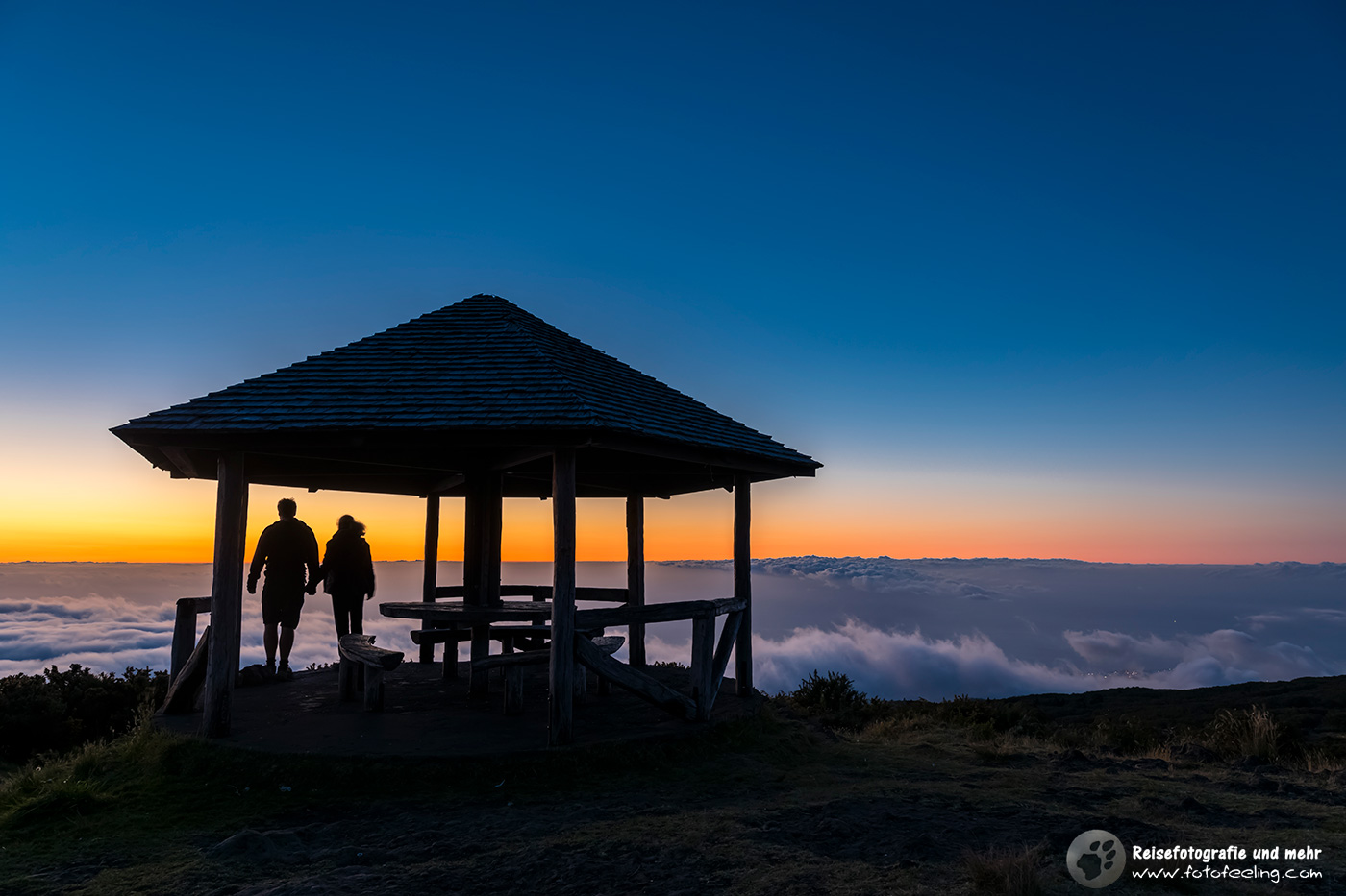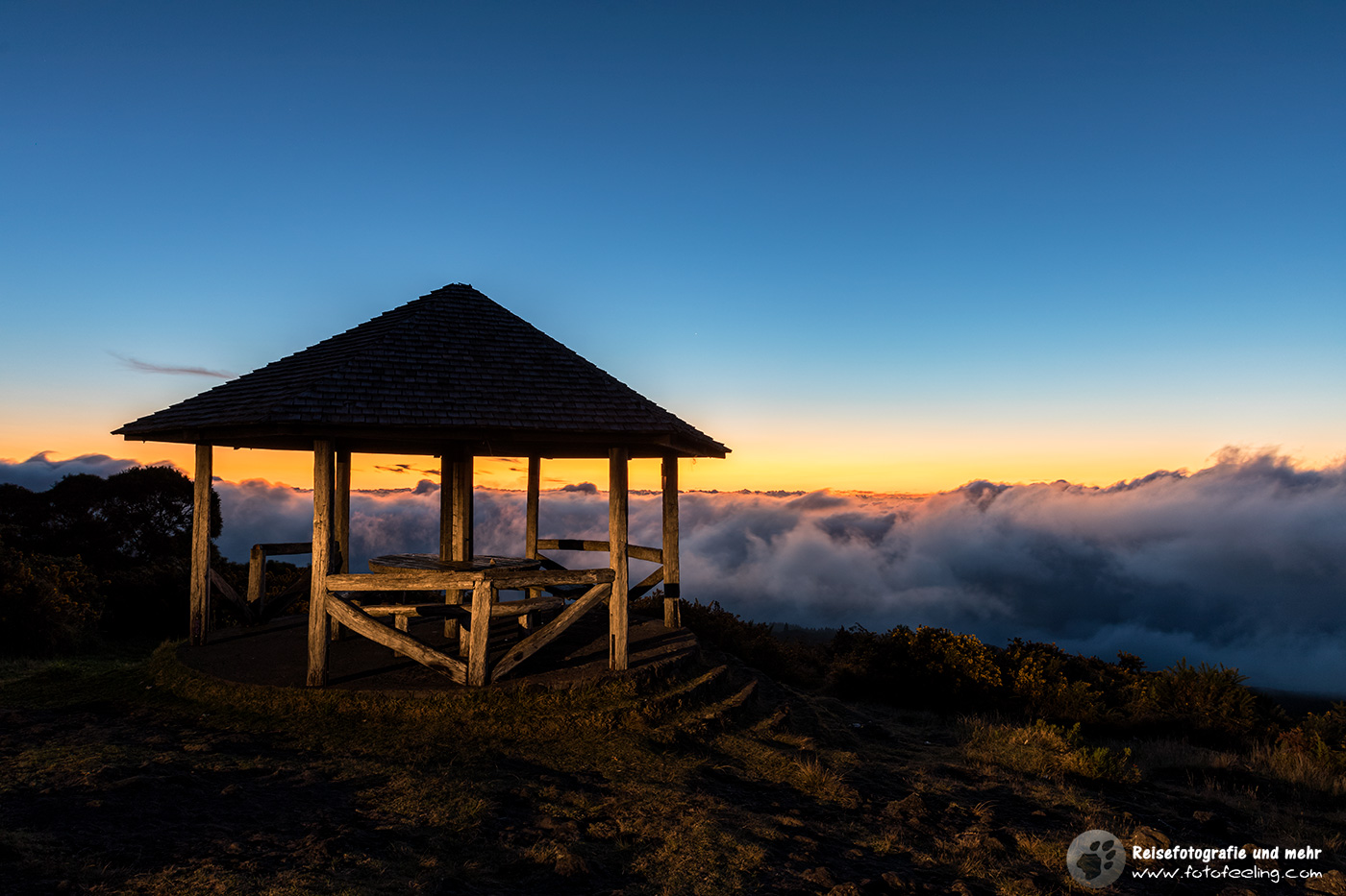 Auf dem Rückweg hielten wir noch an einem tollen Picknickpavillon mit Aussicht auf das Meer und die Küste, die aber ebenfalls unter einer Wolkendecke lagen und machten ein paar Aufnahmen von der Dämmerung, die orange zu uns hoch leuchtete.