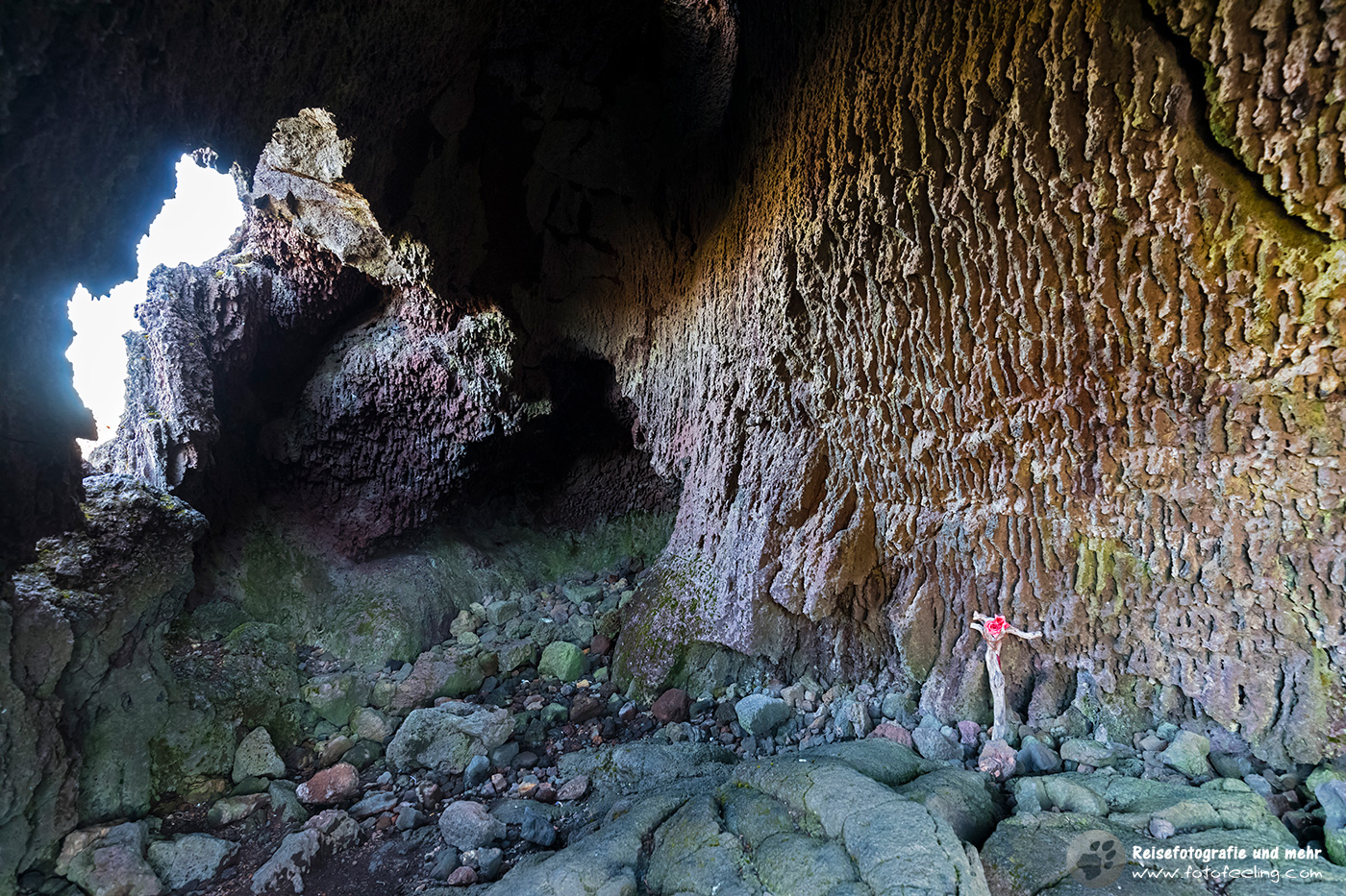 Dann kam der anstrengendste Teil, denn es ging stetig bergauf und das auf dem unwegsamen Vulkangestein. Dadurch war der Weg recht anstrengend und schon bald taten uns die Füße weh, trotz guter Treckingschuhe und Socken. Zum Glück konnten wir den weißen Markierungen, die alle paar Meter auf den Steinen waren, gut folgen. Aber das war ja bei schönstem Sonnenschein auch keine wirkliche Herausforderung.