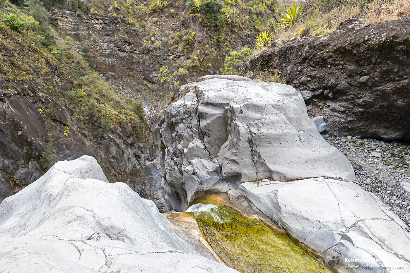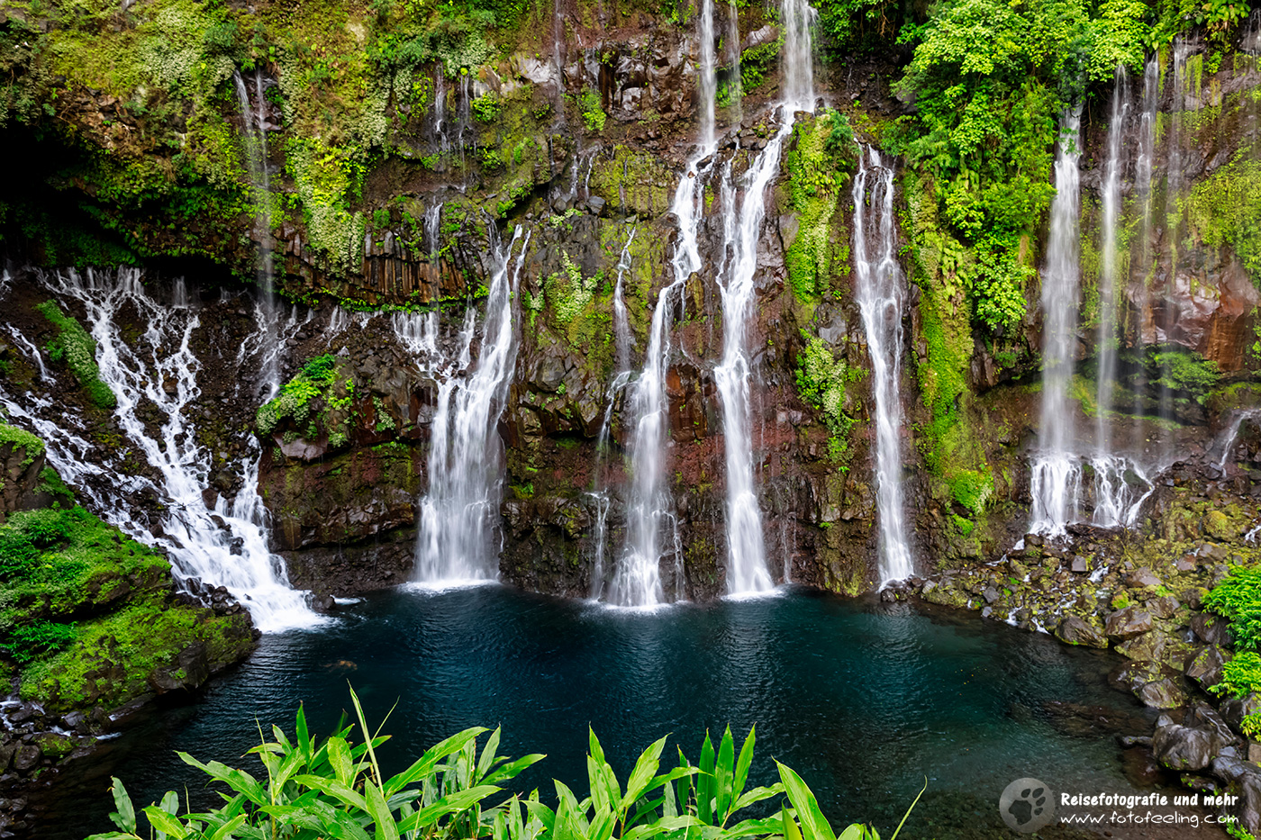 Auf unserem weiteren Weg lag auch noch der Wasserfall „Cascade de Grand Galet“. Dazu fuhren wir auf einer kurvenreichen Straße in die Berge hinein. Uns begleitete der Fluss „Riviére Langevin“, der auch den Wasserfall speist. Hinter einer Kurve lag dann der Wasserfall wunderschön in die Bergwelt eingebettet. Begeistert machten wir einige Aufnahmen.