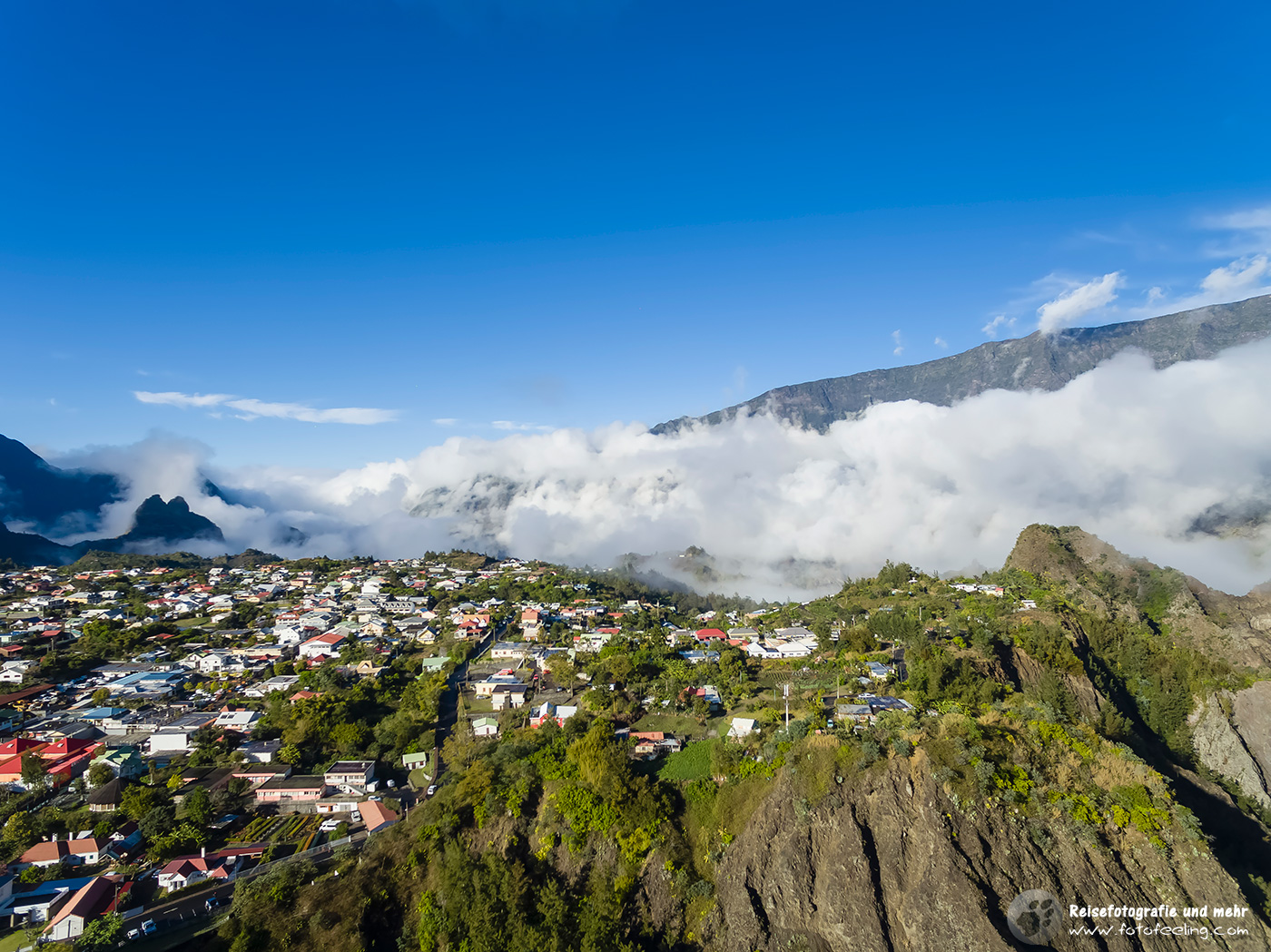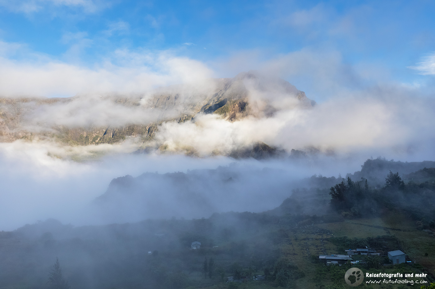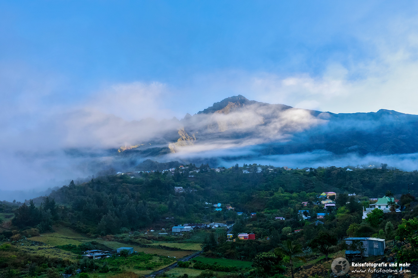 Auch an diesem Morgen klingelte unser Wecker schon um 4.30 Uhr. Schnell füllten wir unsere Kaffeebecher und schon waren wir unterwegs. An diesem Morgen wollten wir ins Bergstädtchen Cilaos, das im Talkessel Cirque de Cilaos im Zentrum der Insel, auf der Südseite des Massif du Piton des Neiges (3070 m) liegt.