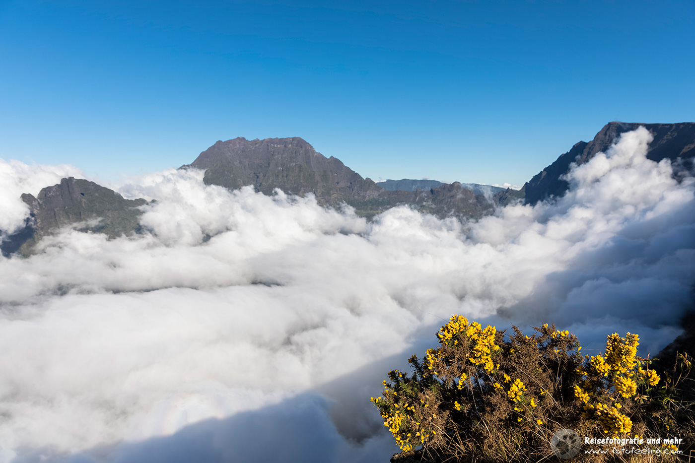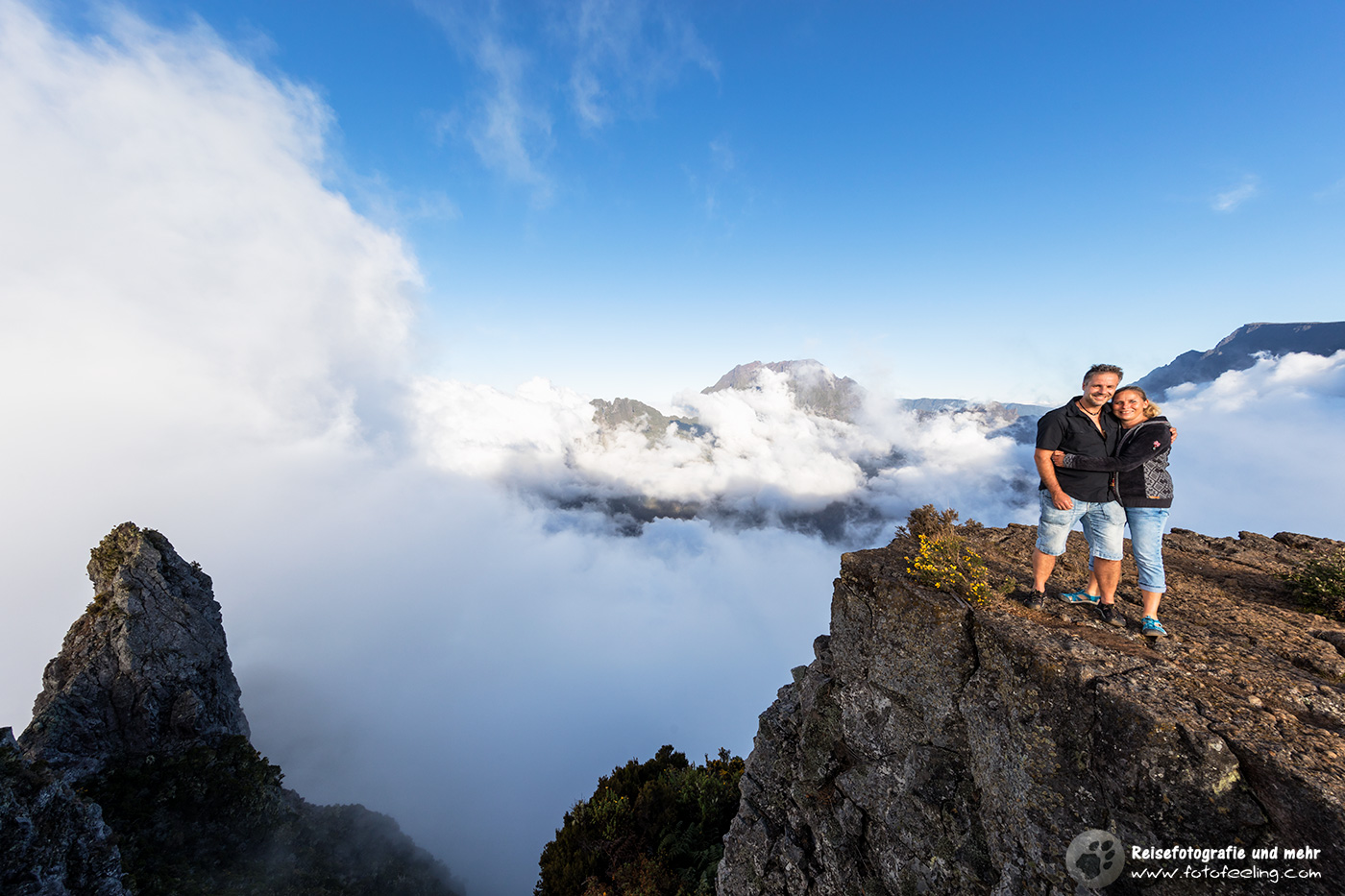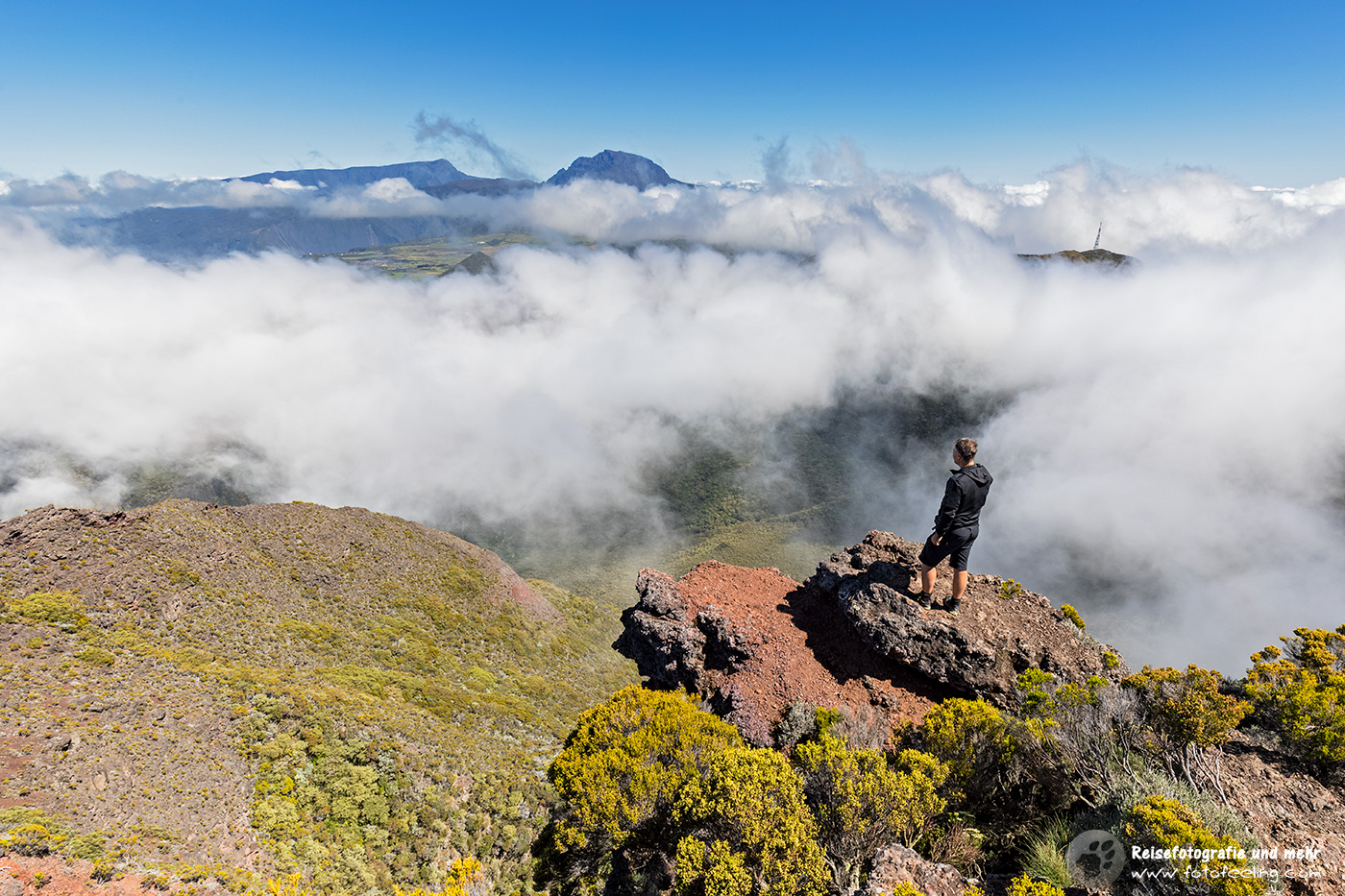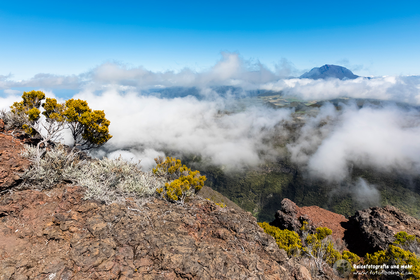Das Wetter hatte sich mittlerweile eingetrübt und es war grau in grau. Da hatte Chris die geniale Idee, dass wir noch einmal auf den Maido fahren, in der Hoffnung über die Wolkengrenze zu kommen. Laut seinem Wetterbericht sollte es am Nachmittag aufklaren. Da war ich sofort dabei, denn der Maido übte auf mich ja schon beim ersten Besuch einen besonderen Reiz aus. Diesmal war unser Tank voll und wir fuhren frohen Mutes los. Um ca. 16.00 Uhr kamen wir bei schönstem Sonnenschein auf dem Gipfel an.