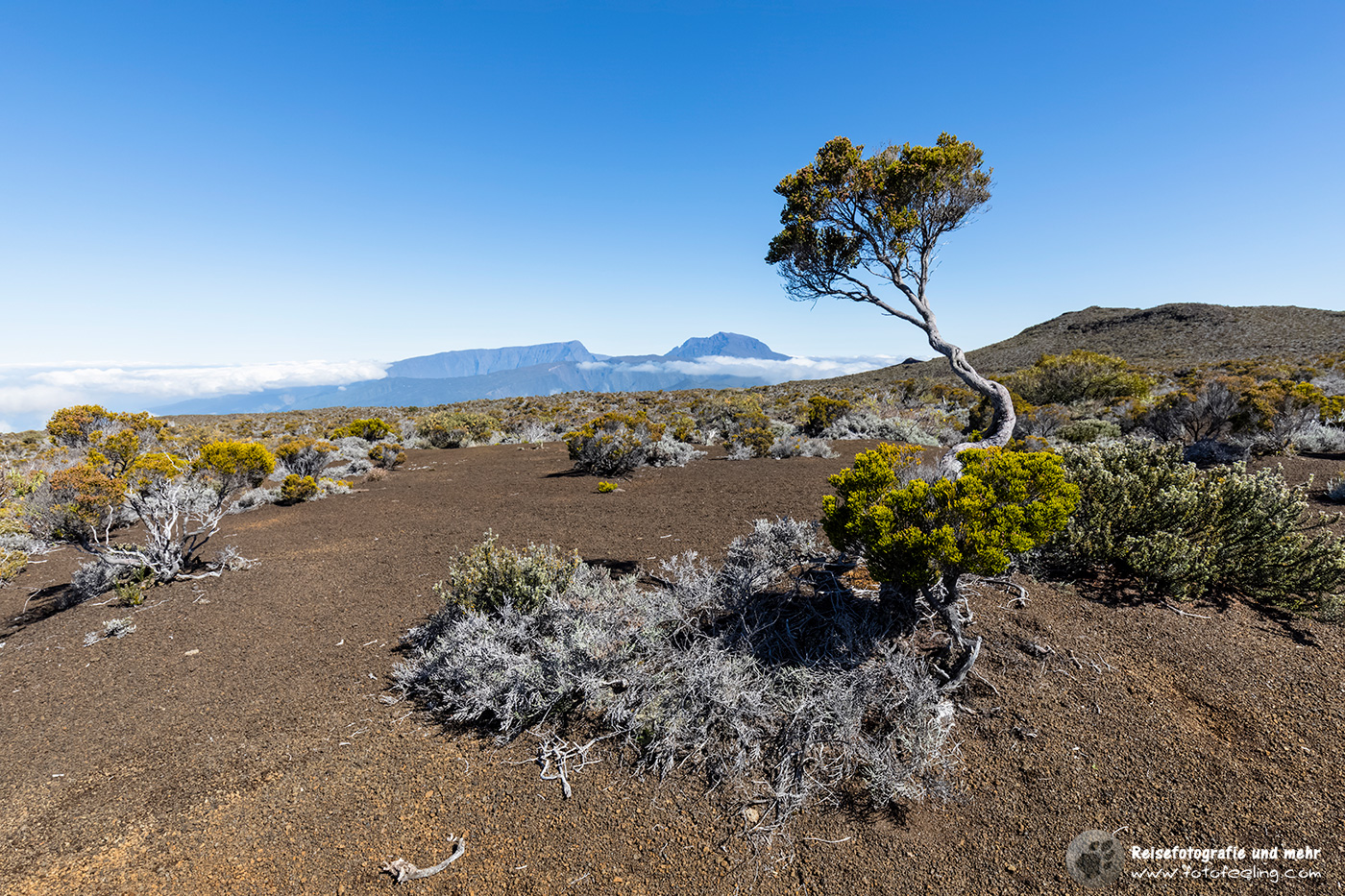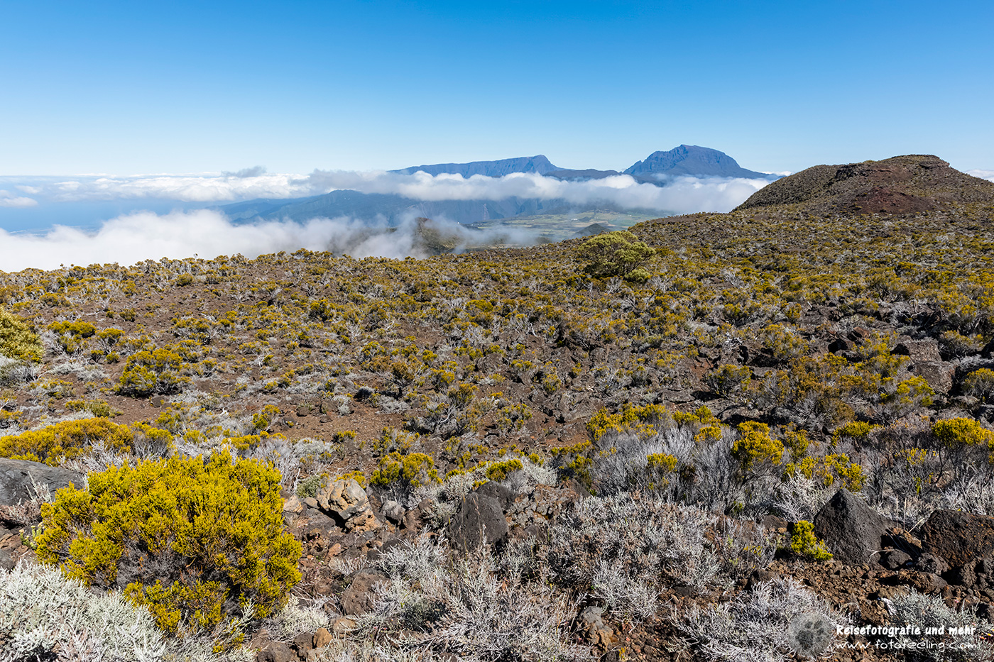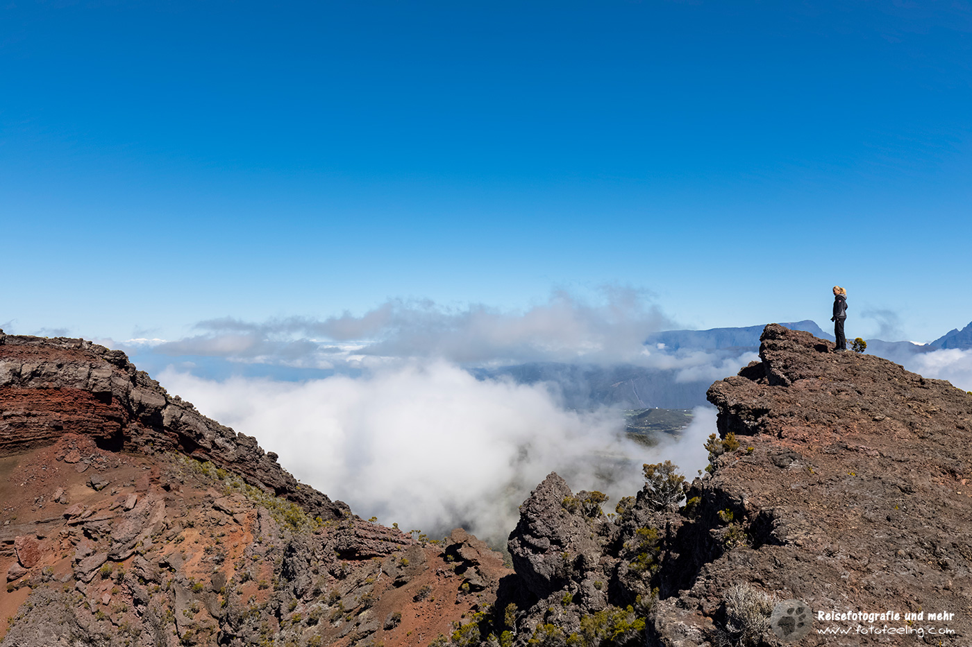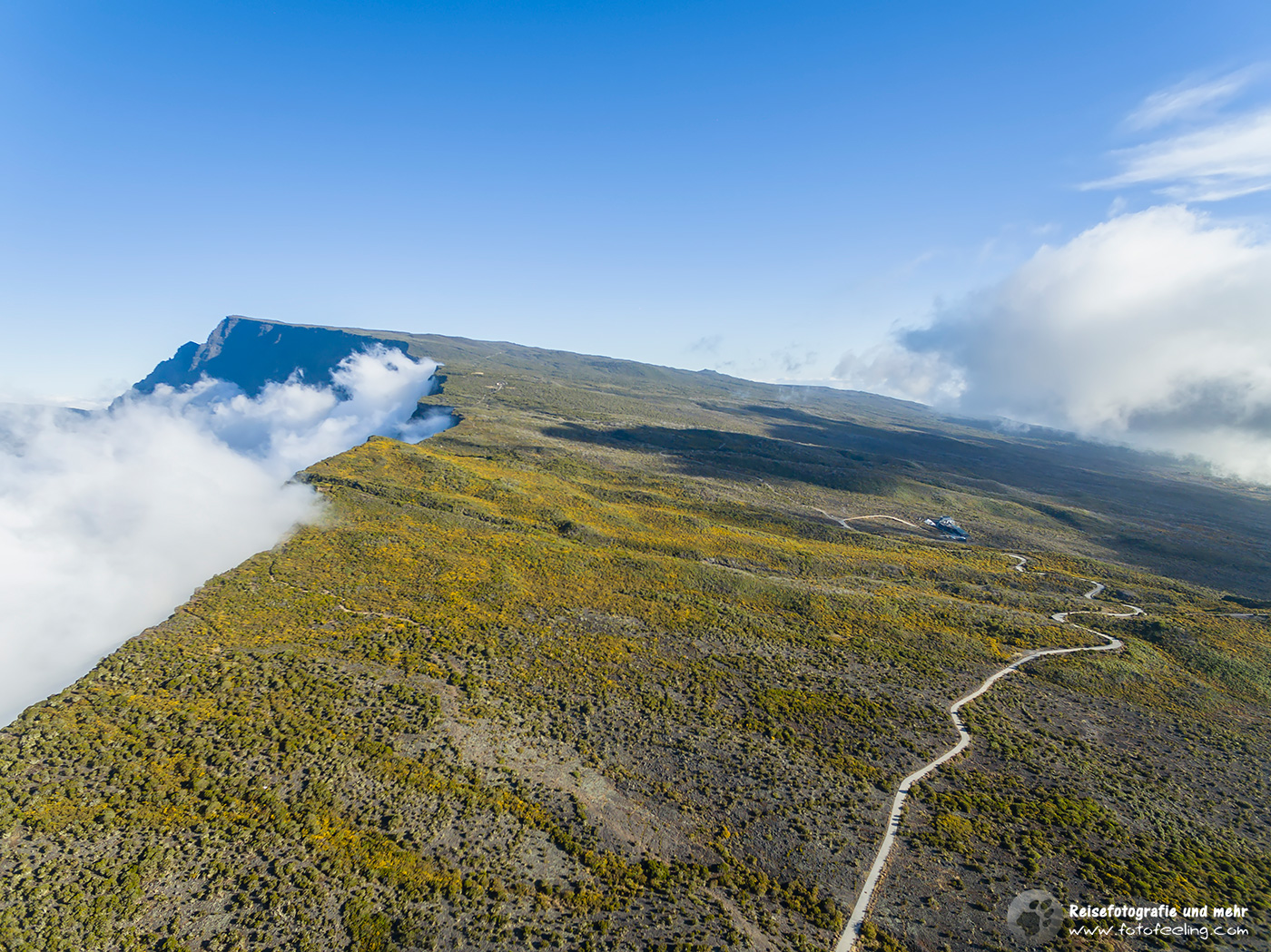 Das Wetter hatte sich mittlerweile eingetrübt und es war grau in grau. Da hatte Chris die geniale Idee, dass wir noch einmal auf den Maido fahren, in der Hoffnung über die Wolkengrenze zu kommen. Laut seinem Wetterbericht sollte es am Nachmittag aufklaren. Da war ich sofort dabei, denn der Maido übte auf mich ja schon beim ersten Besuch einen besonderen Reiz aus. Diesmal war unser Tank voll und wir fuhren frohen Mutes los. Um ca. 16.00 Uhr kamen wir bei schönstem Sonnenschein auf dem Gipfel an.