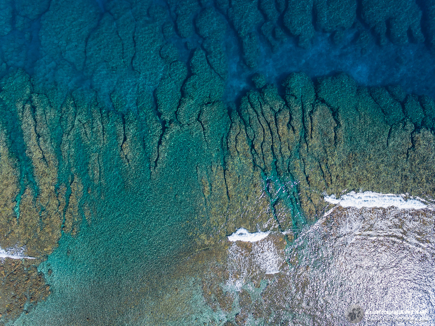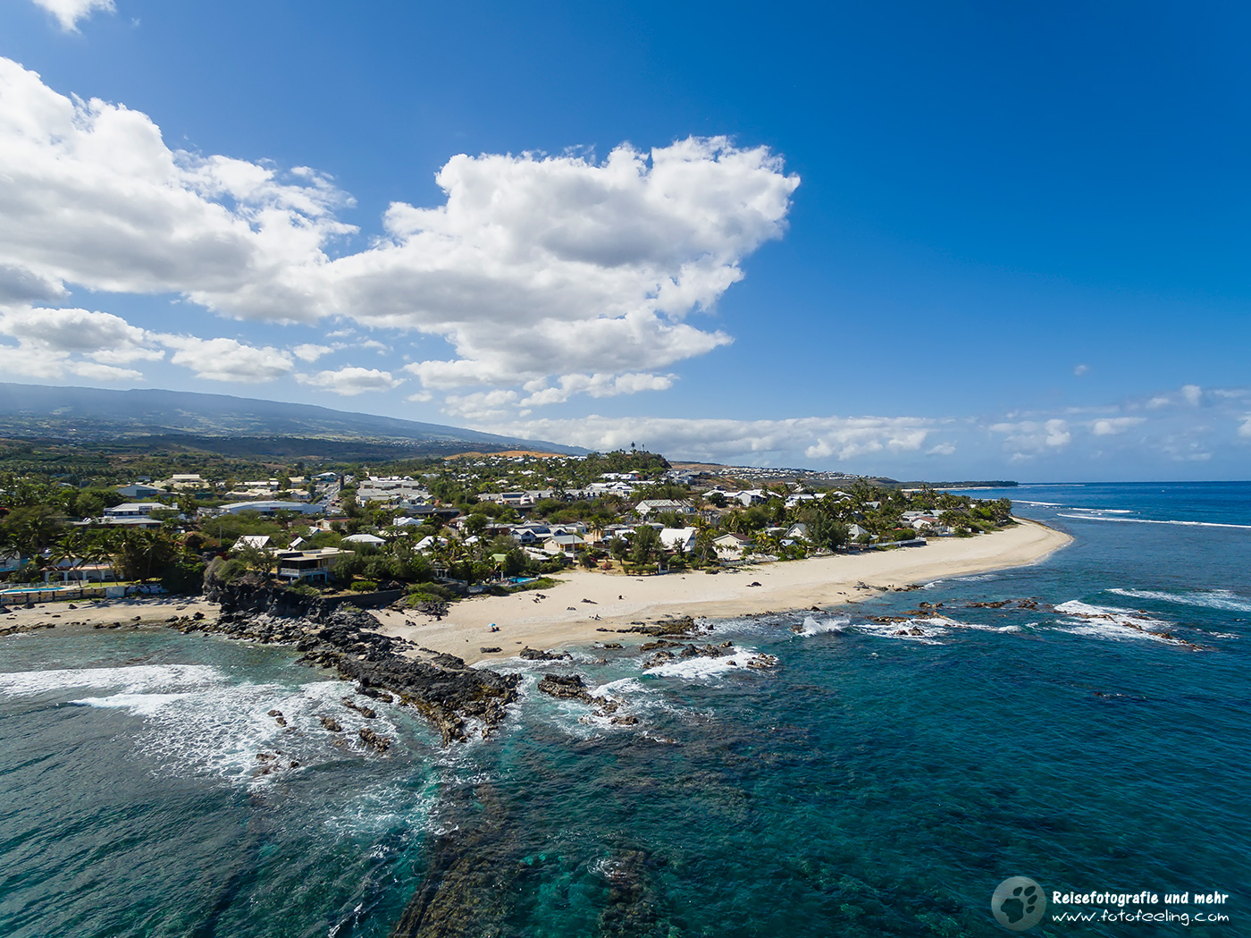 Es war zwar etwas dunstig, aber dafür waren nicht so viele Wolken am Himmel. Während Chris endlich seine Runde flog, blieb ich mit Nico am Strand und wir ratschten, bis der Flieger wieder am Himmel erschien und mir einen zufriedenen Chris zurück brachte. Das Wetter hatte gepasst, aber es war ganz schön schwierig, den Unterwasserwasserfall perfekt abzulichten, zumal der Wind wieder heftig an der Kamera zerrte und er sie ziemlich weit aus der kleinen Öffnung im Fenster halten musste.