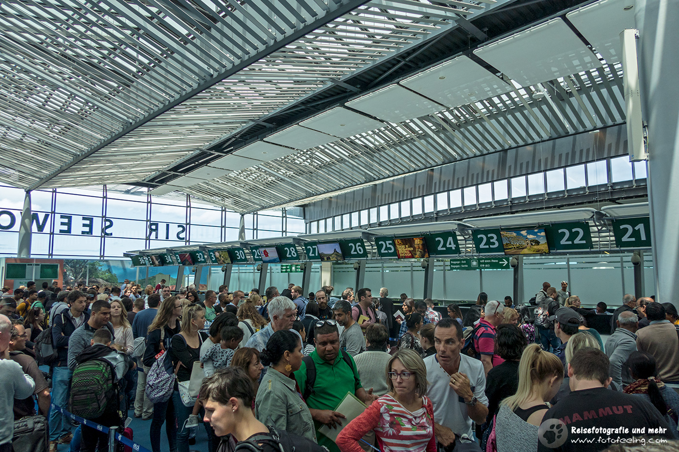 Kurz vor 9.00 Uhr morgens landen wir auf Mauritius und blieben gleich im Transitbereich. Die Abfertigung ging sehr schnell und schon saßen wir im nächsten Flieger, der uns in 40 Minuten nach Réunion brachte. Hier landeten wir um kurz vor 11.00 Uhr. Wieder hatten wir Glück und die Einreise verlief schnell und ohne Probleme.