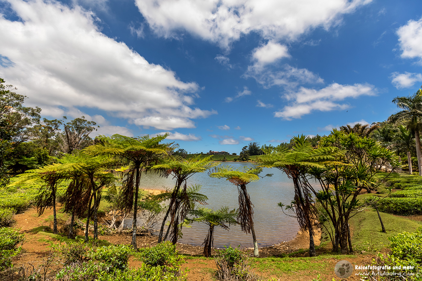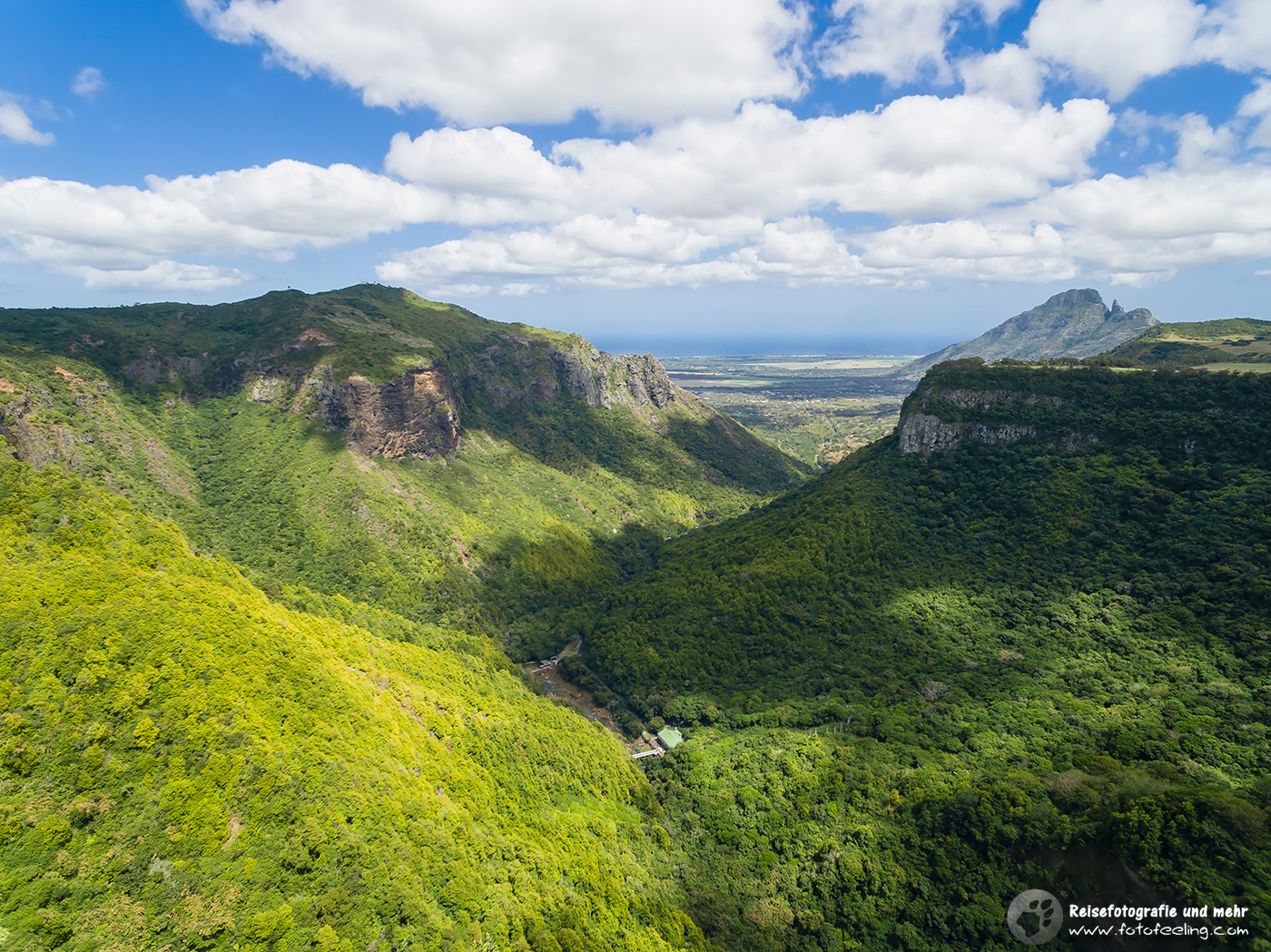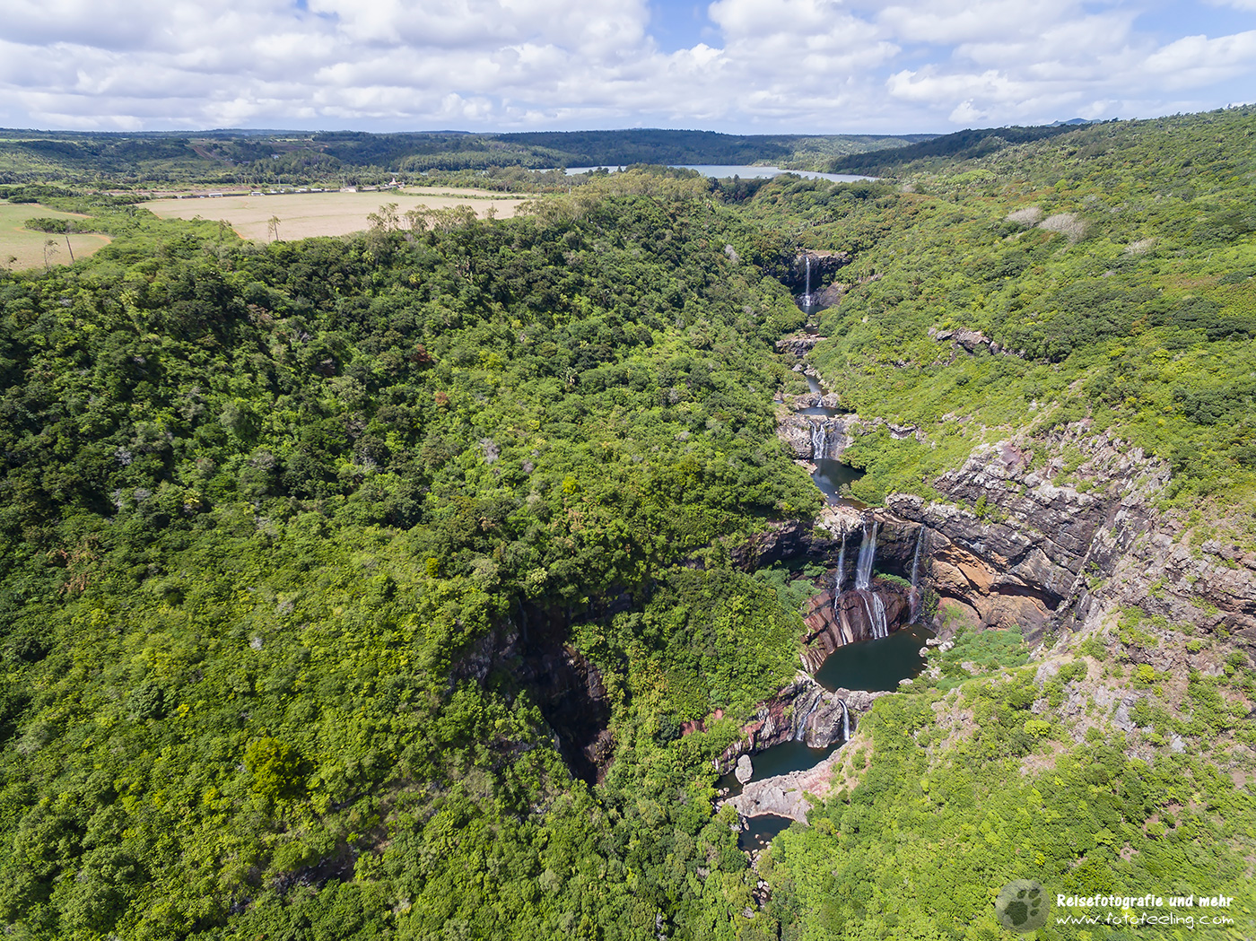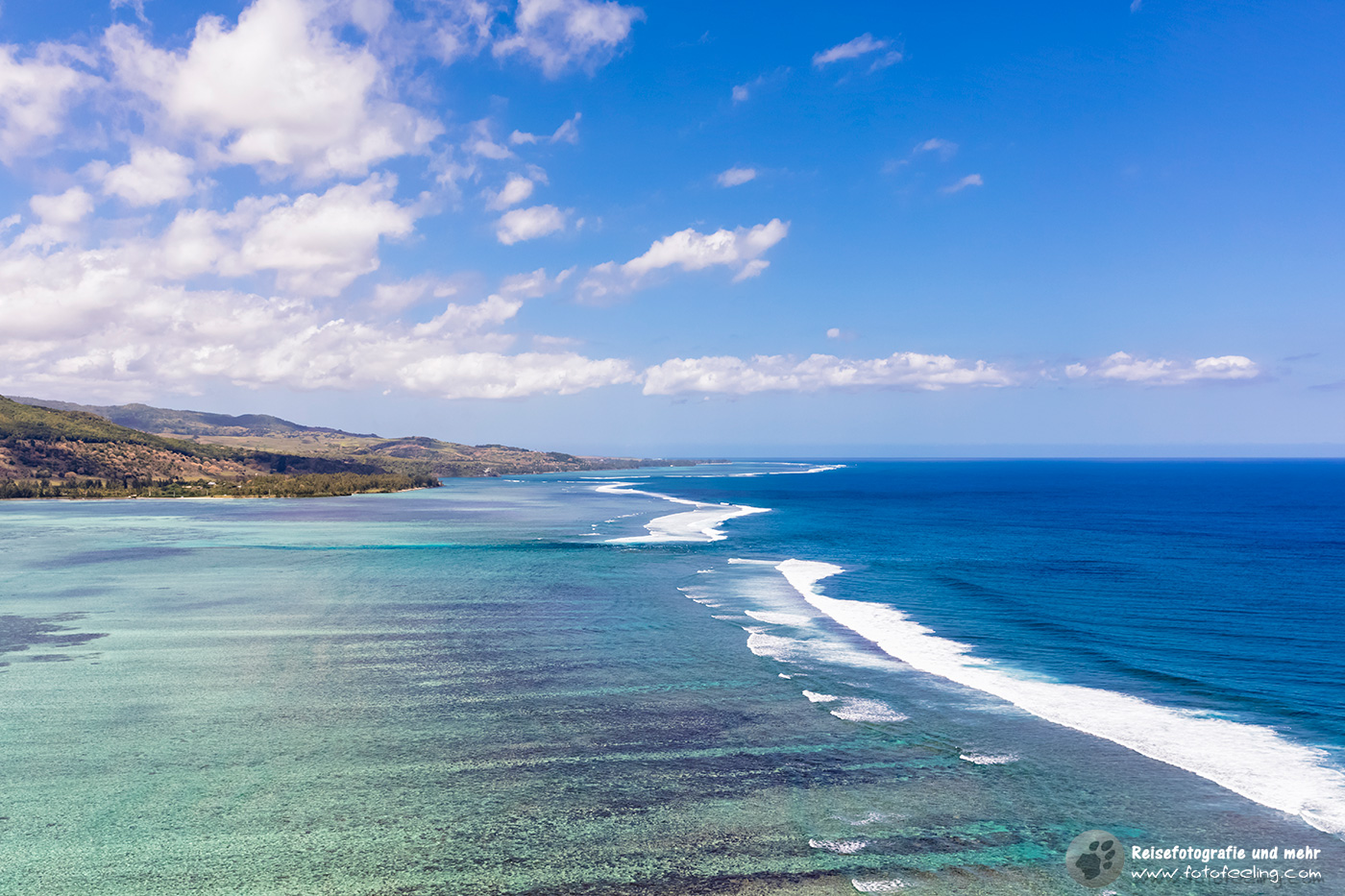 Danach stoppten wir noch am Chamarel Restaurant und tranken einen leckeren Cappuccino mit Aussicht. Die Sonne lachte vom Himmel und das Wasser leuchtete in den schönsten Blautönen. Der Cappu schmeckte köstlich, was nicht nur an der Aussicht lag.