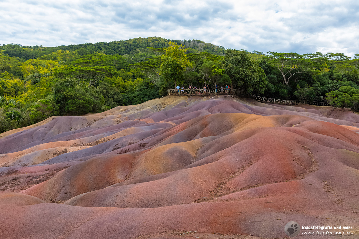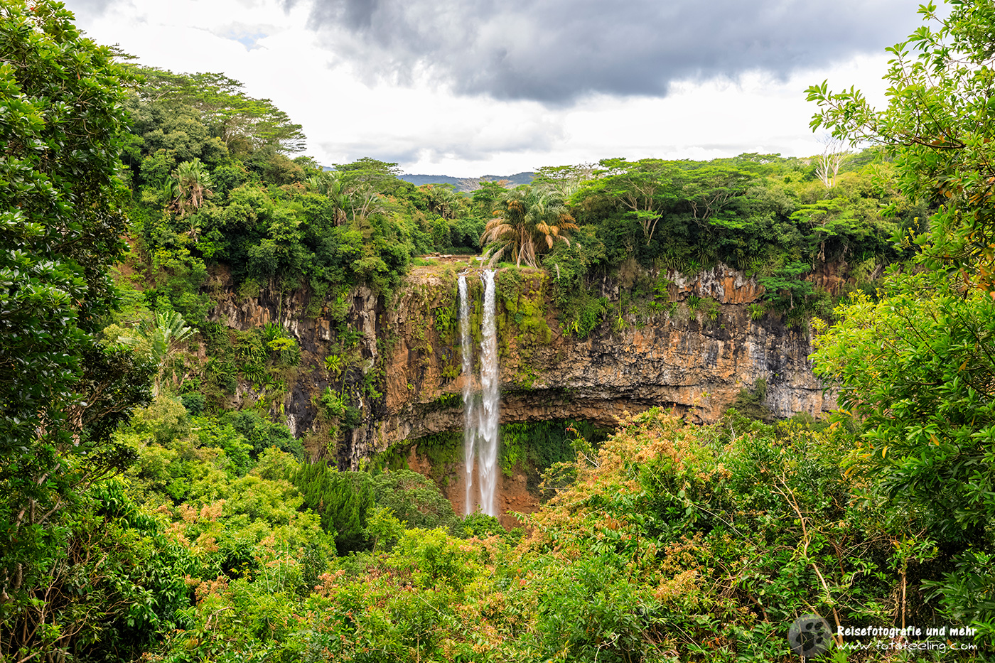 Danach wollten wir unbedingt noch einmal zum Gorges Viewpoint, doch leider war in den Bergen viel schlechteres Wetter und die Aussicht nicht so schön wie beim letzten Mal. So fuhren wir weiter um die Wasserfällen von Chamarel und die Seven Colors Earth (die Siebenfarbigen Erde) anzuschauen. Beides befindet sich in Privatbesitz und kostete umgerechnet 6 Euro (225 Rupien) Eintritt. Gleich zu Anfang gelangt man zu den Zwillingswasserfällen, die ca. 100 m in die Tiefe stürzen. Ein sehr schöner und beeindruckender Anblick. Über eine Treppe gelangten wir zu einer weiteren erhöhten Aussichtsplattform. Wir gingen den gleichen kurzen Weg zu der unteren Aussichtsterrasse zurück. Hier war die eigentliche Attraktion, denn drei bildhübsche Katzen mauzten die Besucher an. Natürlich bekamen sie den einen oder anderen Happen zugeschoben und ließen sich sogar ein wenig streicheln.