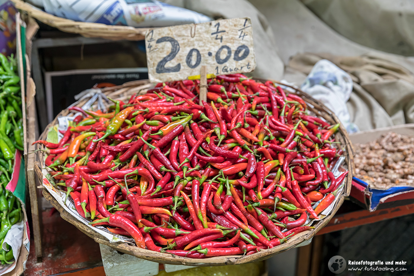 Am Fleischmarkt wartete ich draußen, denn mein Magen reagierte etwas komisch an diesem Morgen. Außerdem hörte man schon von draußen die Hühner schreien und ich wollte nicht live bei der Schlachtung dabei sein. Chris schaute sich um und war begeistert von der Sauberkeit der Stände und Freundlichkeit der Menschen.