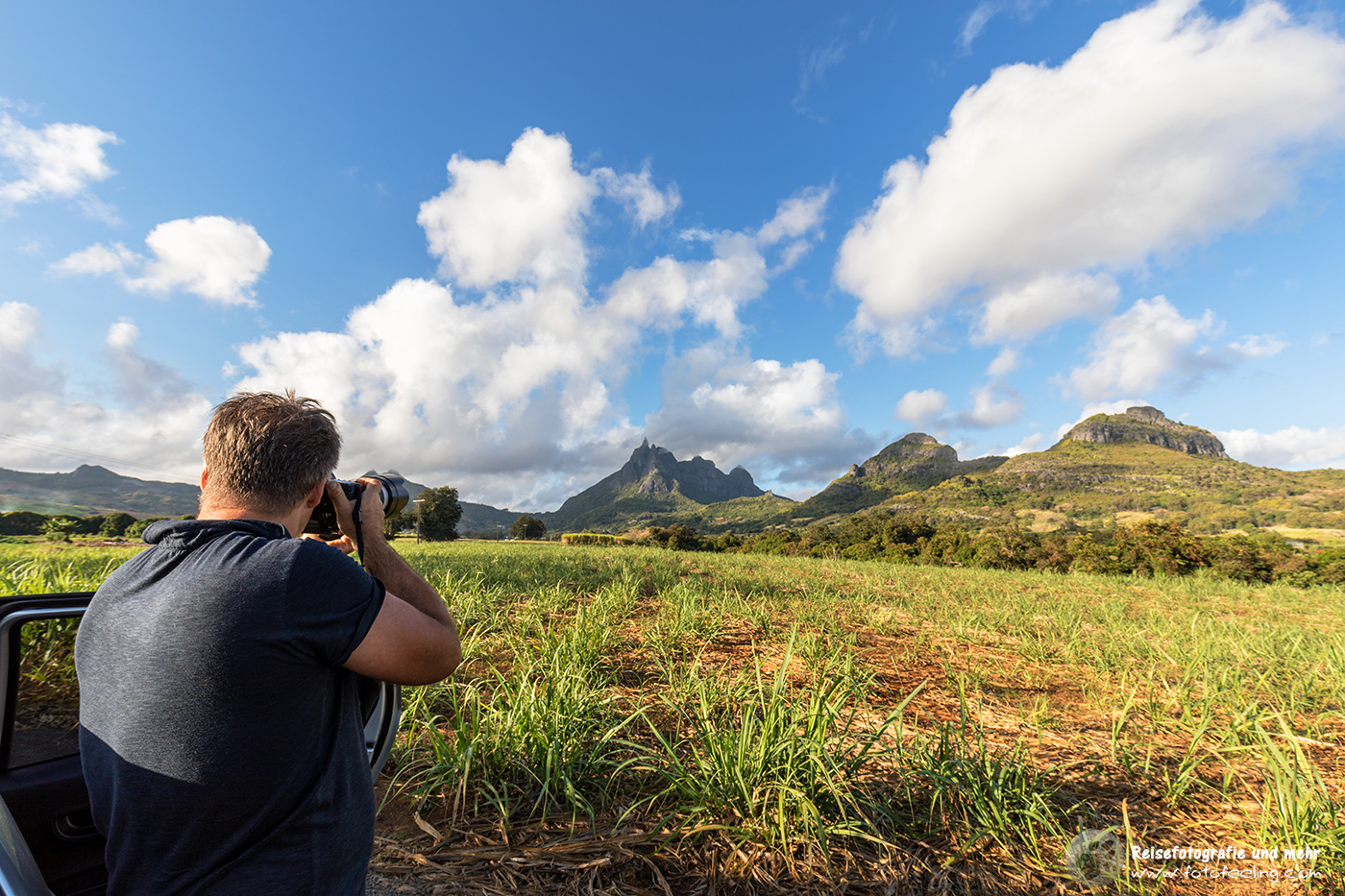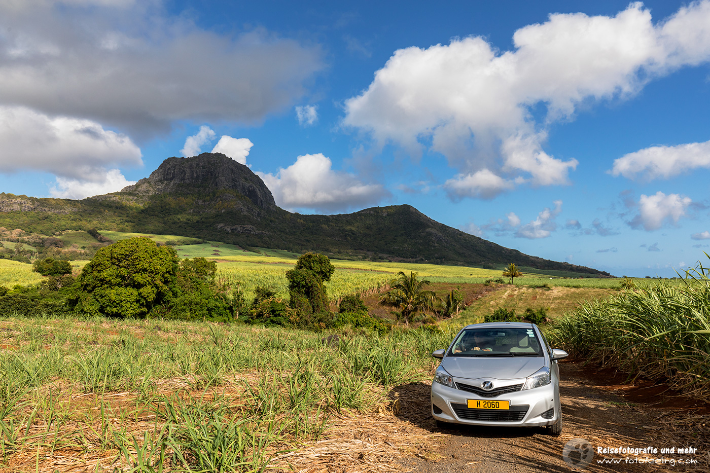 So brachen wir nach einem gemütlichen Frühstück auf. Wieder fuhren wir auf der M3 durch das Landesinnere und umgingen damit die Staus vor Port Louis. Dafür entdeckten wir einen schönen Platz mit Aussicht auf die Berge und Zuckerrohrfelder ganz nah an der Autobahn, die wir dafür kurz verließen.