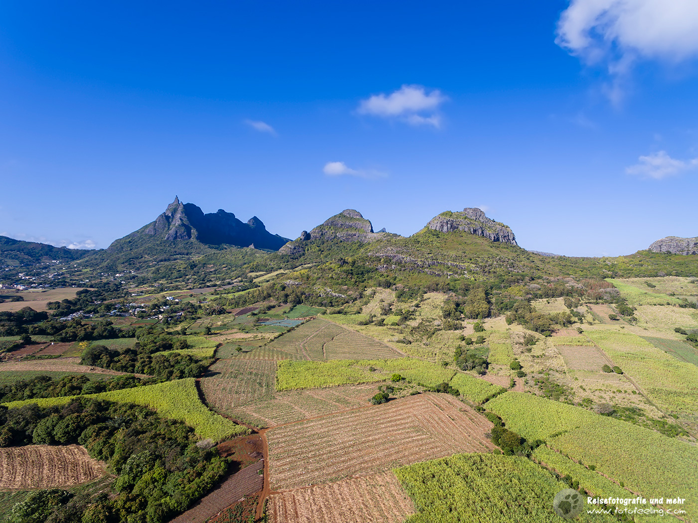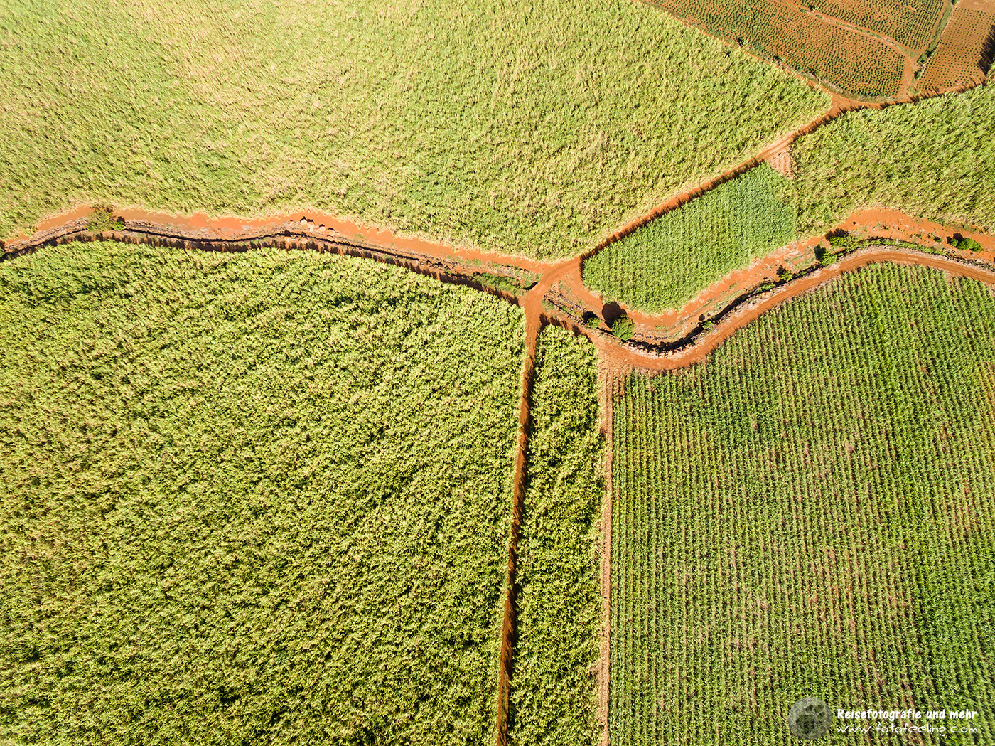 Doch vorher hielten wir noch an unserem Lieblingszuckerrohrfeld mit Aussicht auf die Berge und Chris ließ den Kopter steigen.